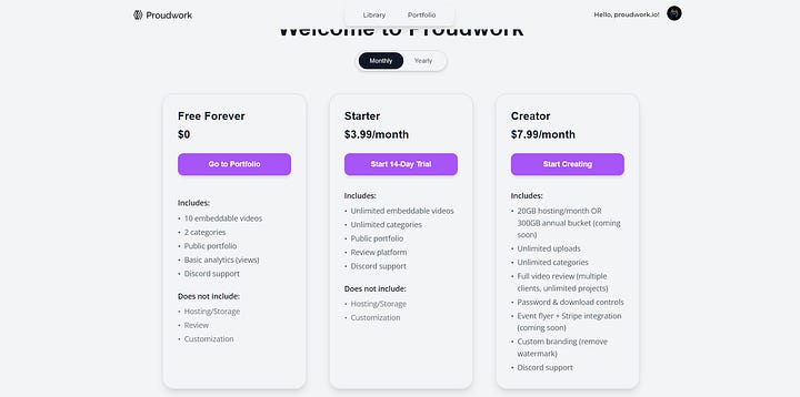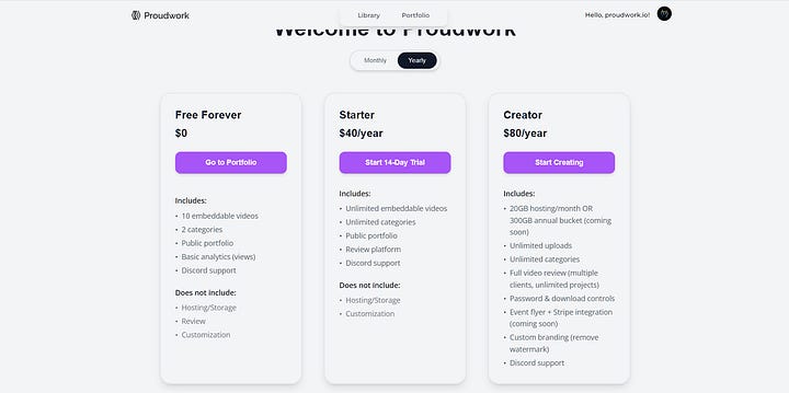 As a creative and business owner, I created Proudwork initially as a lightweight, bloat-free embeddable video platform that now has grown into a full creator profile platform that supports videos, photos, affiliate links, events and video review (soon) to fill my own need.